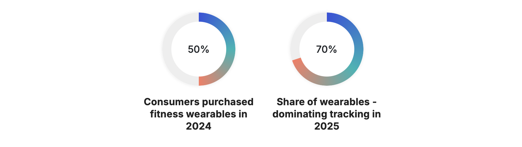 Global Growth Insights - Wearables adoption: 50% of consumers purchased fitness wearables in 2024; wearables now dominate tracking with 70%+ share